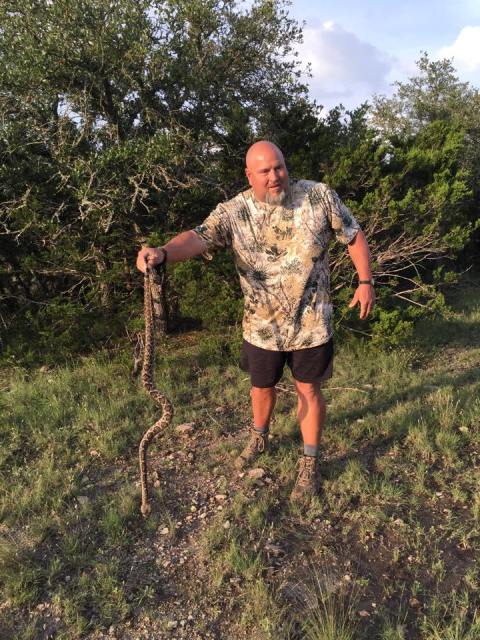 Knowing we encroached on Shea’s hunting area I figured his day was shot, it was getting late so we stopped and got him from the blind his first question was what the heck is going on!! What was all that shooting about? We quickly explained and made our way to the skinning shed. We made a plan to head back out in the morning. We headed into the pasture at daylight thinking of putting a stalk on a Texas Ibex. We came around a corner of brush and found the herd about 100 yards away from a blind and I decided to put the hunter in the blind and spread some corn and hopefully they would come in and give Shea a shot. I made my way out of the set up and proceeded to get the truck momentarily stuck. So about 15 minute later I watched the herd of Texas Ibex go by my location so I figured they must have cleaned the corn up so I went back to check and see if they got a shot. I rounded the corner and Jason was snapping some pics with Shea and his Trophy Texas Ibex he shot at 8 yards. We spent the rest of the day just checking out the ranches we ended up running across this bad boy !